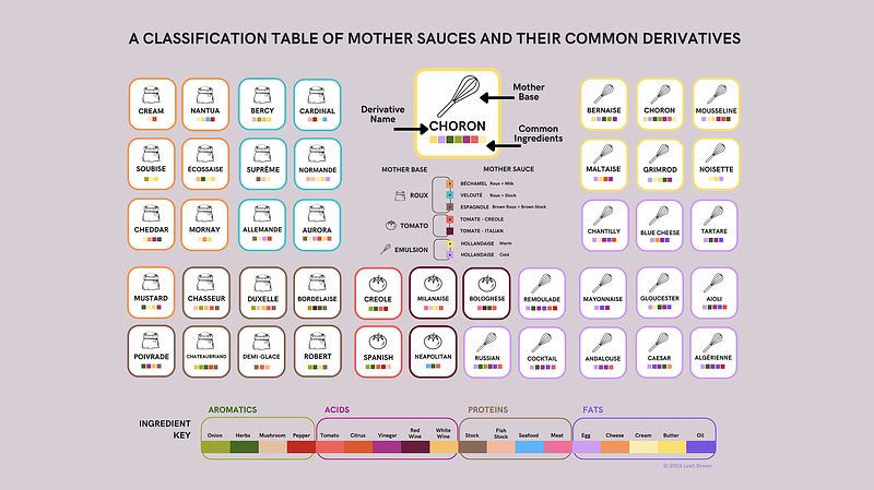 A Classification Table of Mother Sauces and Their Common Derivatives (2023) - light version